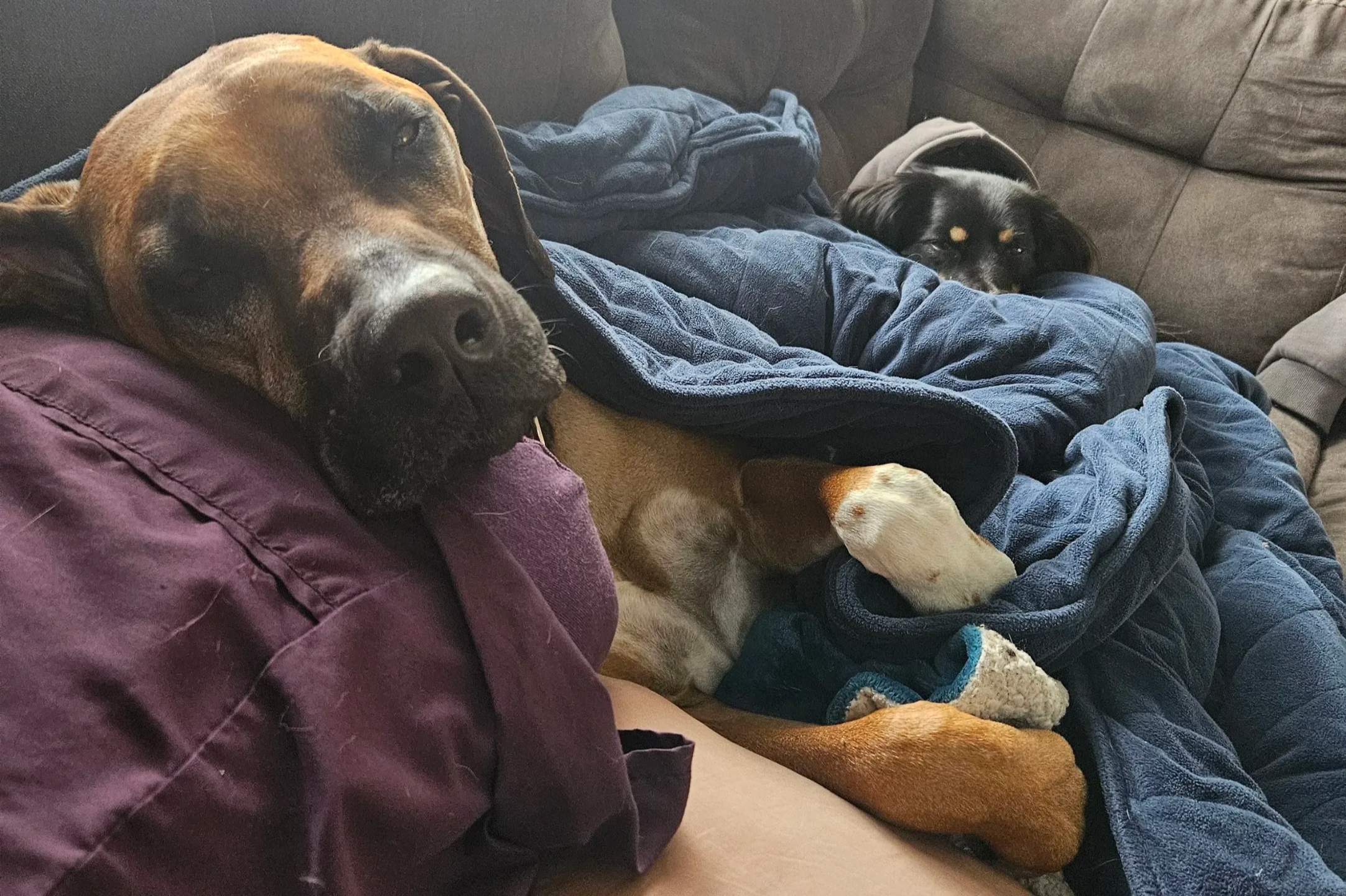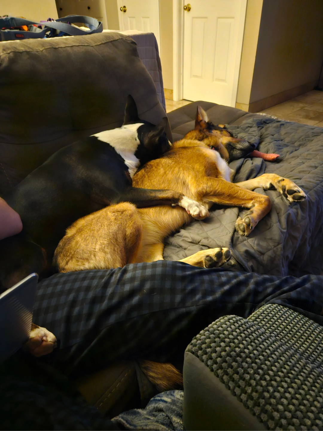 No loud kennels. Just soft beds, cozy corners, and the calming presence of two professional dog handlers and a dog trainer in an actual home environment. Your dog is treated as part of the family here.